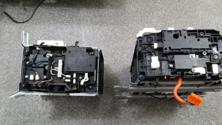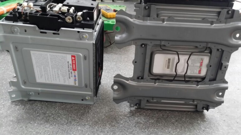 오른쪽이 혼다의 시빅 하이브리드 배터리팩 이고, 왼쪽이 현대의 아반테 하이브리드 배터리팩 입니다.
