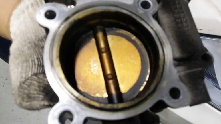 엔진 크랭크케이스 내부에는 연소 과정에서 피스톤 링 틈새로 새어 나온 블로바이 가스(미연소 혼합기 + 엔진오일 미스트 포함)가 축적됩니다. 이 가스는 대기 방출 대신 PCV 밸브를 통해 흡기 쪽으로 재순환됩니다. 이때 오일 미스트가 스로틀 바디 내벽에 달라붙고, 여기에 연소 부산물인 카본 입자가 겹겹이 쌓이면서 두꺼운 카본 슬러지 층이 형성됩니다.
