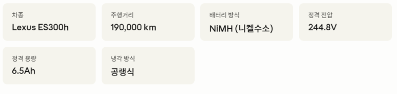 차량 기본 정보 및 배터리 사양